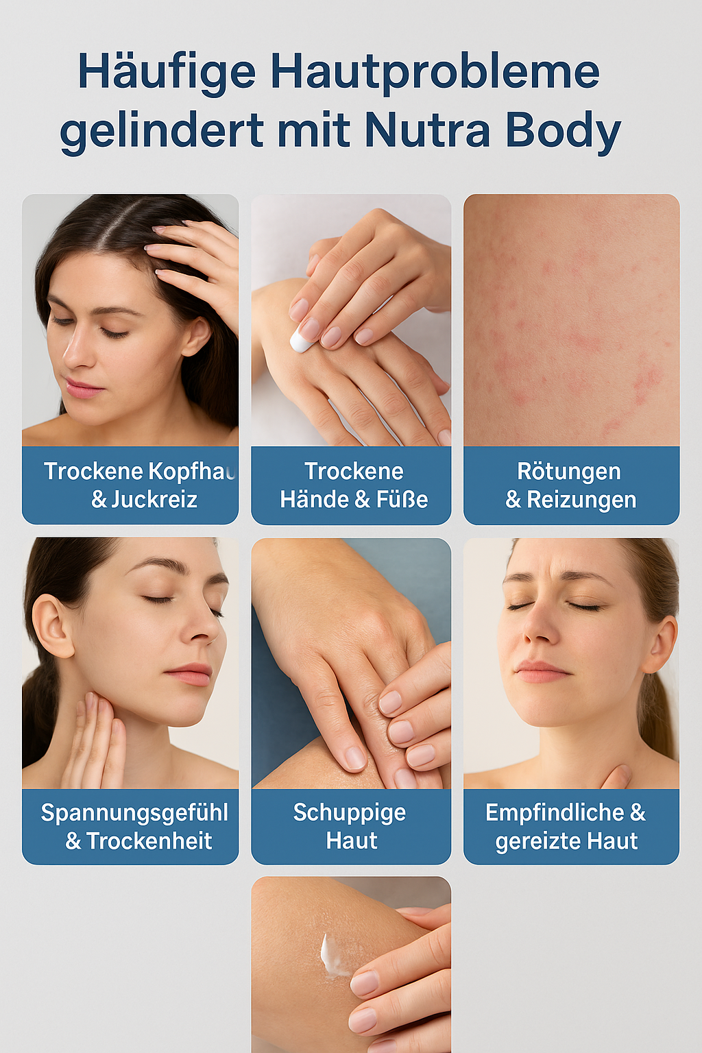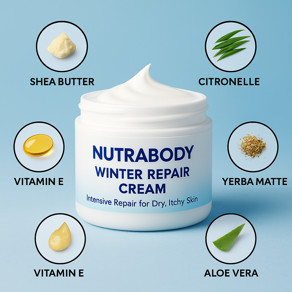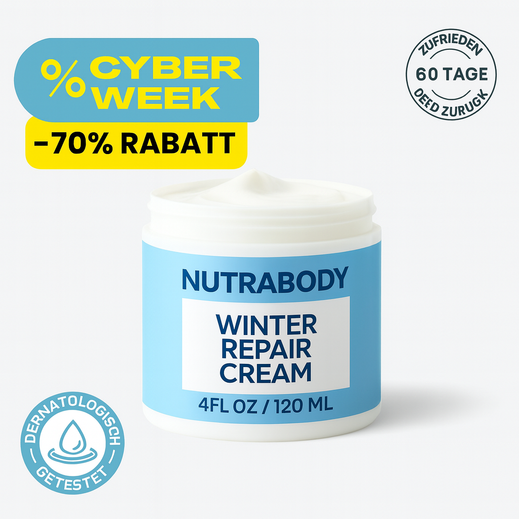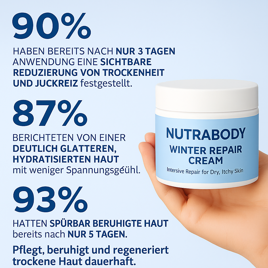 Die NUTRABODY Winter Repair Cream spendet intensive Feuchtigkeit, beruhigt Rötungen und Irritationen und unterstützt die Regeneration der Haut. Sie reduziert Schuppen, macht die Haut spürbar weicher und schützt vor erneuter Trockenheit.